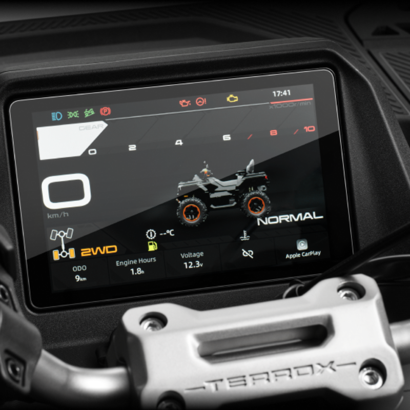 Независимото окачване осигурява комфортно преминаване през неравности и препятствия. С пълна LED осветителна система, 8″ MMI сензорен дисплей и USB-C портове, АТВ GOES Terrox 1000 предлага съвременни технологии за максимално удобство.